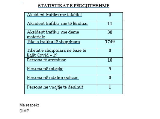Gjatë kësaj kohe, janë regjistruar 41 aksidente në vend ku prej tyre 30 janë me dëme materiale.
