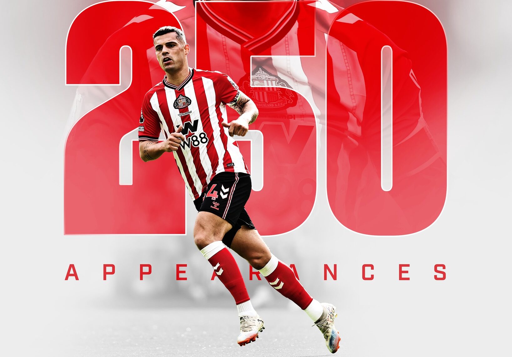 “Një numër rekord paraqitjesh në Premier League për Granit Xhakën”, ka shkruar Sunderlandi në rrjetet sociale.