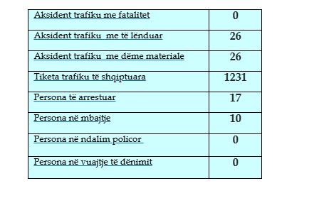 Njëherësh në raportin 24-orësh thuhet se janë shqiptuar 1 mijë e 231 gjoba trafiku, si dhe janë arrestuar 13 persona e dhjetë janë dërguar në mbajtje.