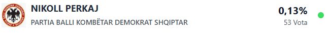 Kështu thonë rezultatet e publikuara nga KQZ-ja. Sipas të dhënave, Nikoll Perkaj i ka marrë 53 vota.