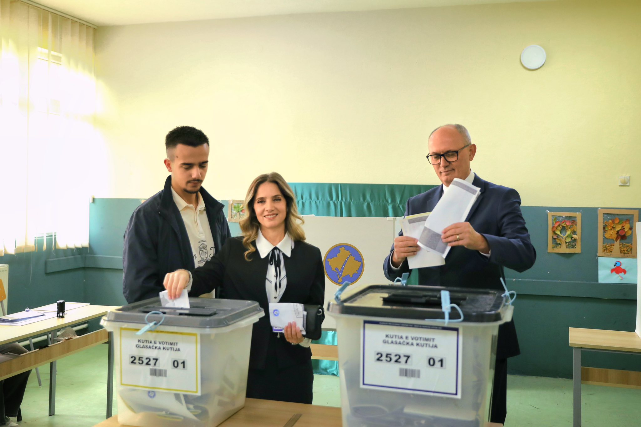 Kryetari i Ferizajt dhe njëherësh kandidat edhe për një mandat të ri, Agim Aliu, së bashku me bashkëshorten dhe djalin Gentin, votuam.