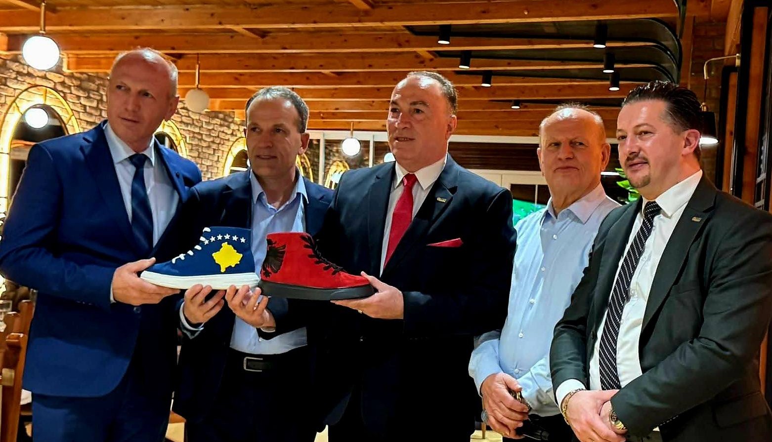 “Në shenjë respekti dhe bashkëpunimi kombëtar, i dhuruam zotit Raboshta një palë këpucë të qëndisura me flamurin e Kosovës dhe të Shqipërisë, prodhim vendor Made in Kosova nga Solid, Suharekë. Ky ishte një simbol i bukur i bashkëpunimit ekonomik dhe i lidhjes së fortë mes bizneseve shqiptare. Urime për një sezon turistik 2026 të jashtëzakonshëm! Sa më shumë vizitorë dhe suksese për Gardenland Resort Resort Hotel! Turizmi dhe bizneset shqiptare ecin përpara së bashku!”, tha Shahini.