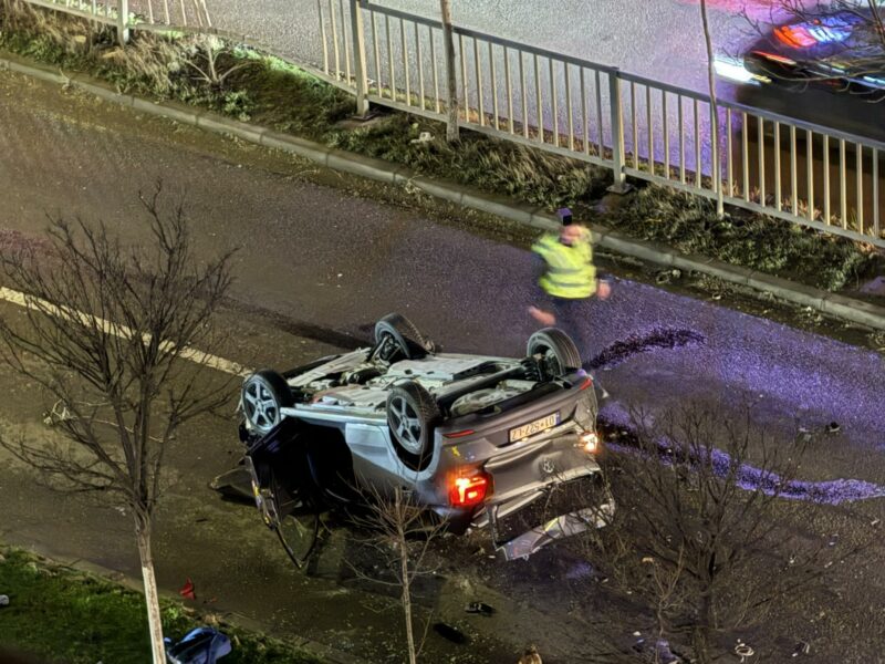 Aksident trafiku në rrugën Fushë Kosovë-Prishtinë, vetura përfundon përmbys