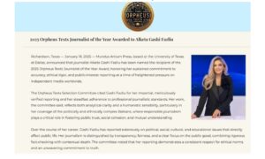 2025 Orpheus Texts Journalist of the Year Awarded to Alketa Gashi Fazliu