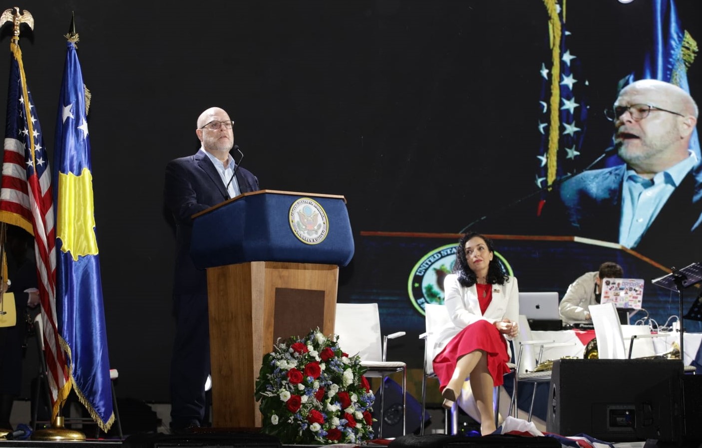 Ambasadori amerikan në Prishtinë, Jeffrey Hovenier, ka uruar amerikanët por edhe popullin e Kosovës derisa ka thënë se mbështetja për Kosovën vazhdon.