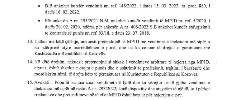 Bëhet fjalë për ankesat e zyrtarëve E.B, A.D, B.C, B.H, SH.B, RR.M , B.B, N.M dhe S.B.