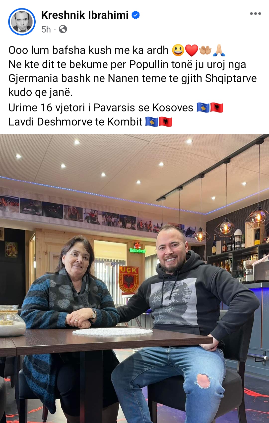 Aktori shqiptar që jeton dhe vepron në Gjermani, Kreshnik Ibrahimi ka uruar për 16-vjetorin e pavarësisë së Kosovës.