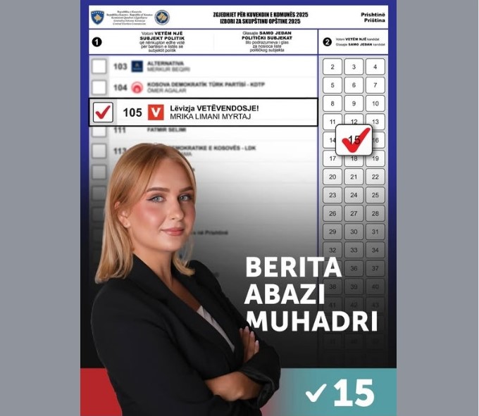 Me vizion të qartë për një Prishtinë më të pastër, më të drejtë dhe me institucione më afër qytetarit, Berita nuk është thjesht një kandidate – ajo është zëri i ndryshimit të mirëfilltë në zgjedhjet lokale me numrin 15.