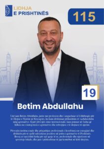 Betim Abdullahu me numër 19, është kandidat për asamble në kryeqytet i Lidhjes së Prishtinës.
