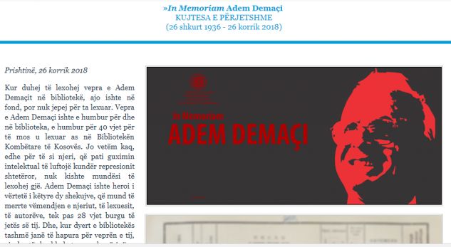 Biblioteka Kombëtare e Kosovës i ka dhënë një hapësirë të veçantë librave të Adem Demacit.