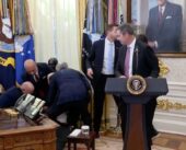 Drejtuesit të një kompanie farmaceutike i bie të fikët gjatë konferencës së Trump (Video)