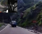 Pamje të frikshme: Shkëmbinj gjigantë bien nga mali dhe shkatërrojnë kamionët në rrugë (VIDEO)