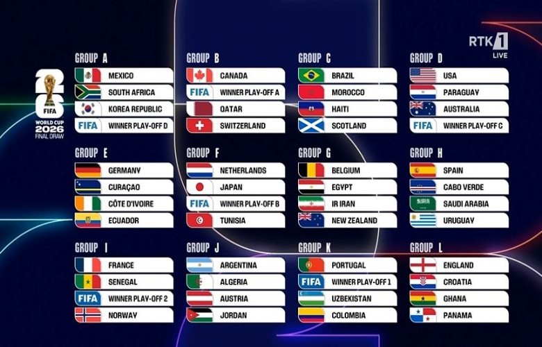 Në Uashington është tërhequr shorti për Kampionatin Botëror “FIFA world Cup 2026”, short i cili u transmetua drejtpërdrejt në Radiotelevizionin e Kosovës (RTK).