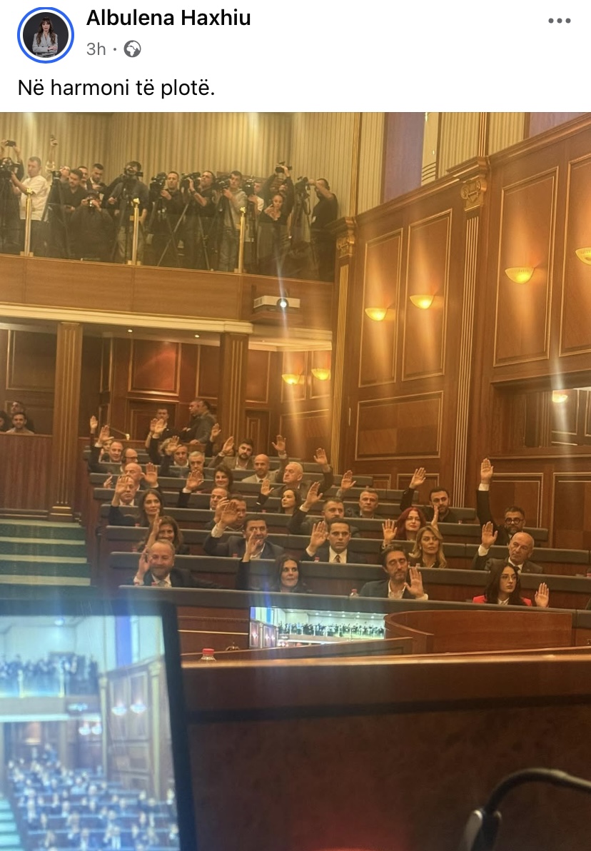 Menjëherë pasi përfundoi seanca, deputetja e Vetëvendosjes, Albulena Haxhiu publikoi një foto të deputetëve të PDK-së dhe Listës Srbe në Kuvend kur votuan kundër Glauk Konjufcës kryeministër.