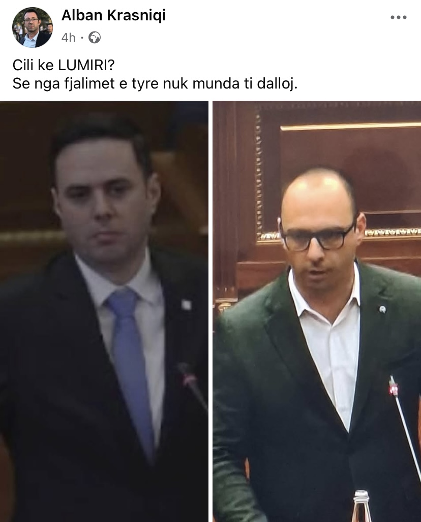 “Cili ke Lumiri? Se nga fjalimet e tyre nuk munda ti dalloj”, shkroi Krasniqi në Fb teksa bëri bashkë në një foto Lumir Abdixhikun dhe Igor Simiqin.