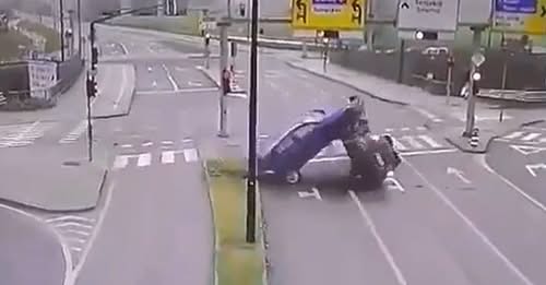 Pamjet tregojnë një makinë që kalon trotuarin me shpejtësi të lartë dhe godet një automjet tjetër që qëndronte para një semafori në një kryqëzim. Forca e goditjes bëri që të dy automjetet të përfundonin mbi çatitë e tyre. VIDEO