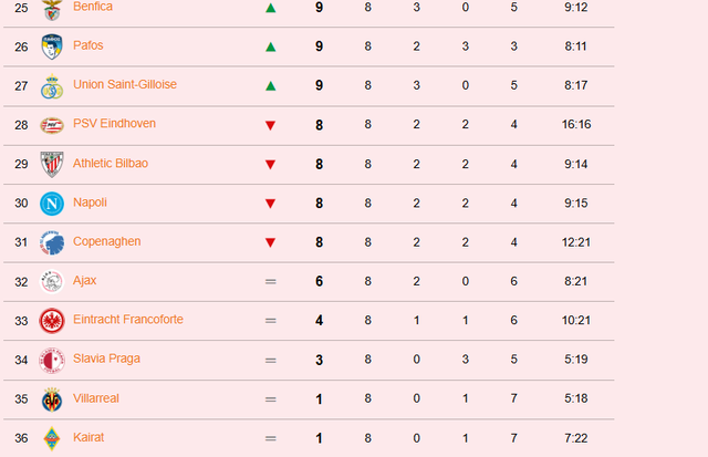 Jashtë kësaj 8-she ngeli Reali, që u mposht 3-2 nga Benfica e Mourinhos, ndërsa i njëjti fat ndoqi edhe kampionët në fuqi të PSG-së, që barazuan 1-1 me Newcastle.