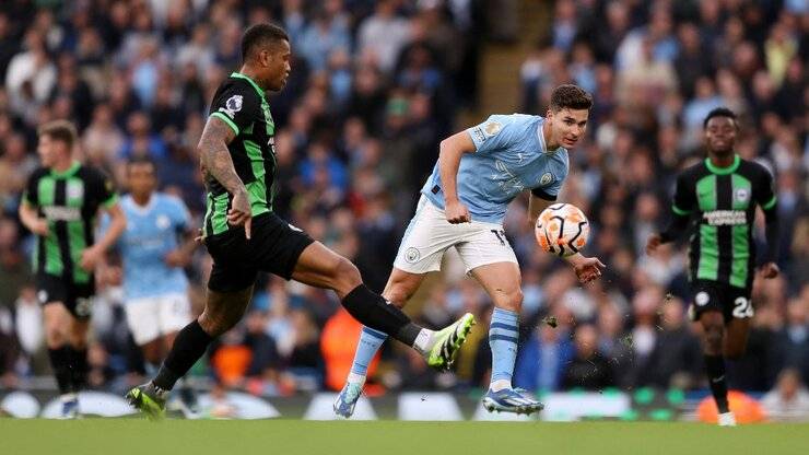 Në minutën e 7-të, ku pas një aksioni perfekt të “qytetarëve”, “fantazisti” argjentinas, Julian Alvarez çon topin në rrjetën e portierit Steele. Pak minuta më vonë Erling Haaland përfiton nga një gabim në prapavijën e Brighton, për të çuar sërish topin në rrjetën e miqve.
