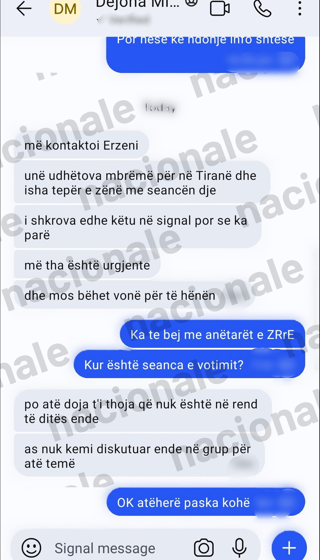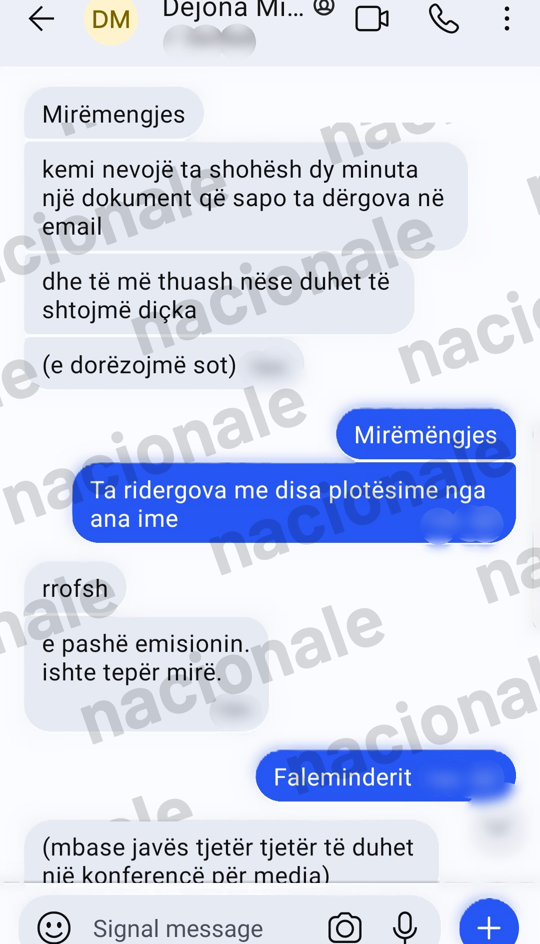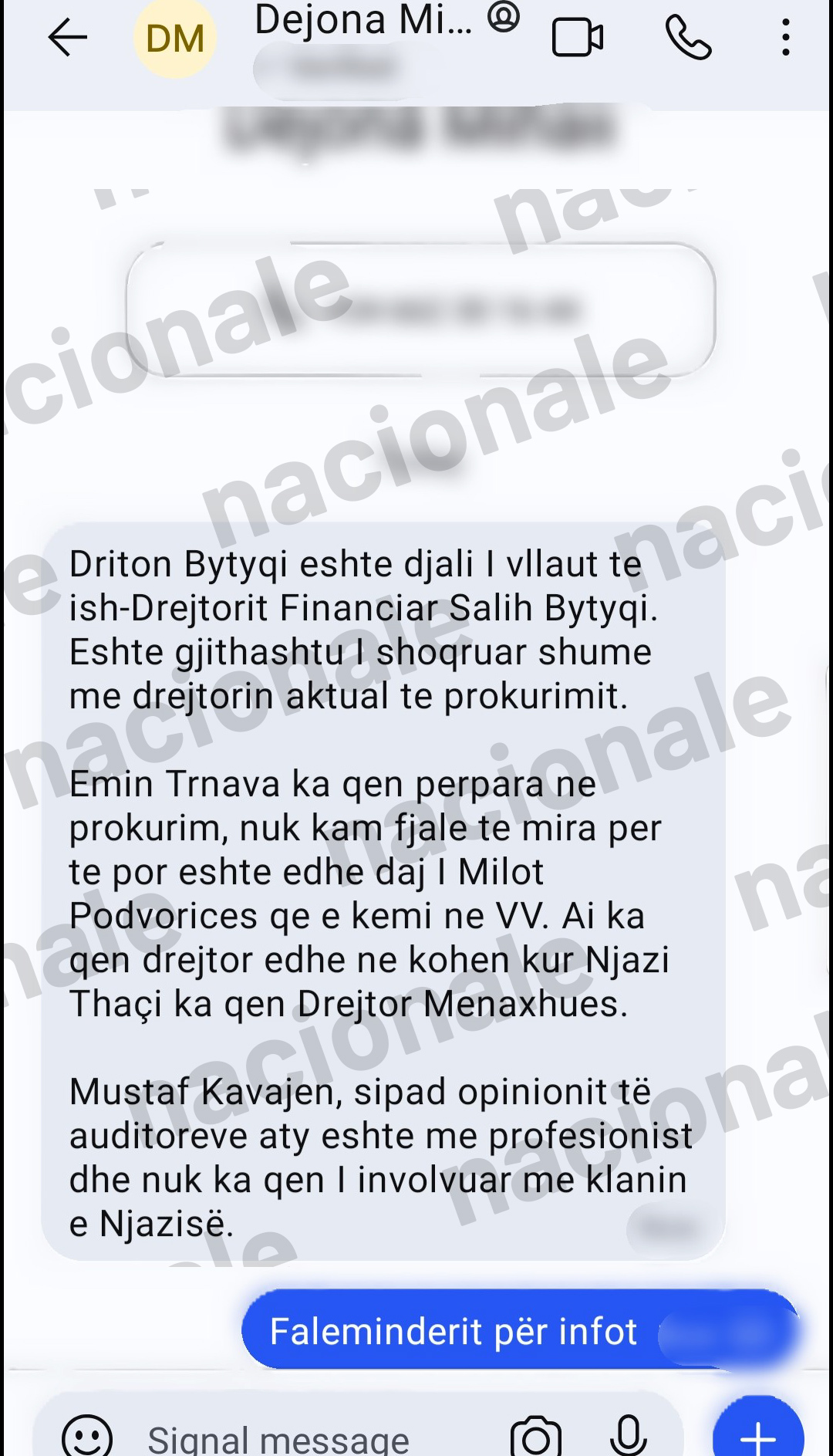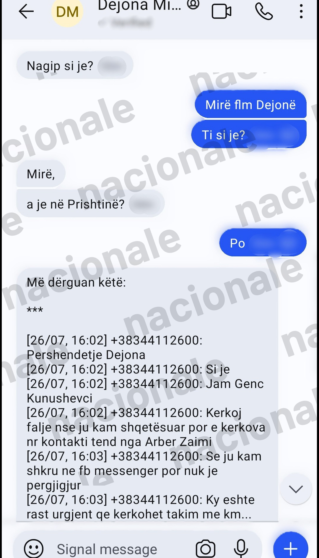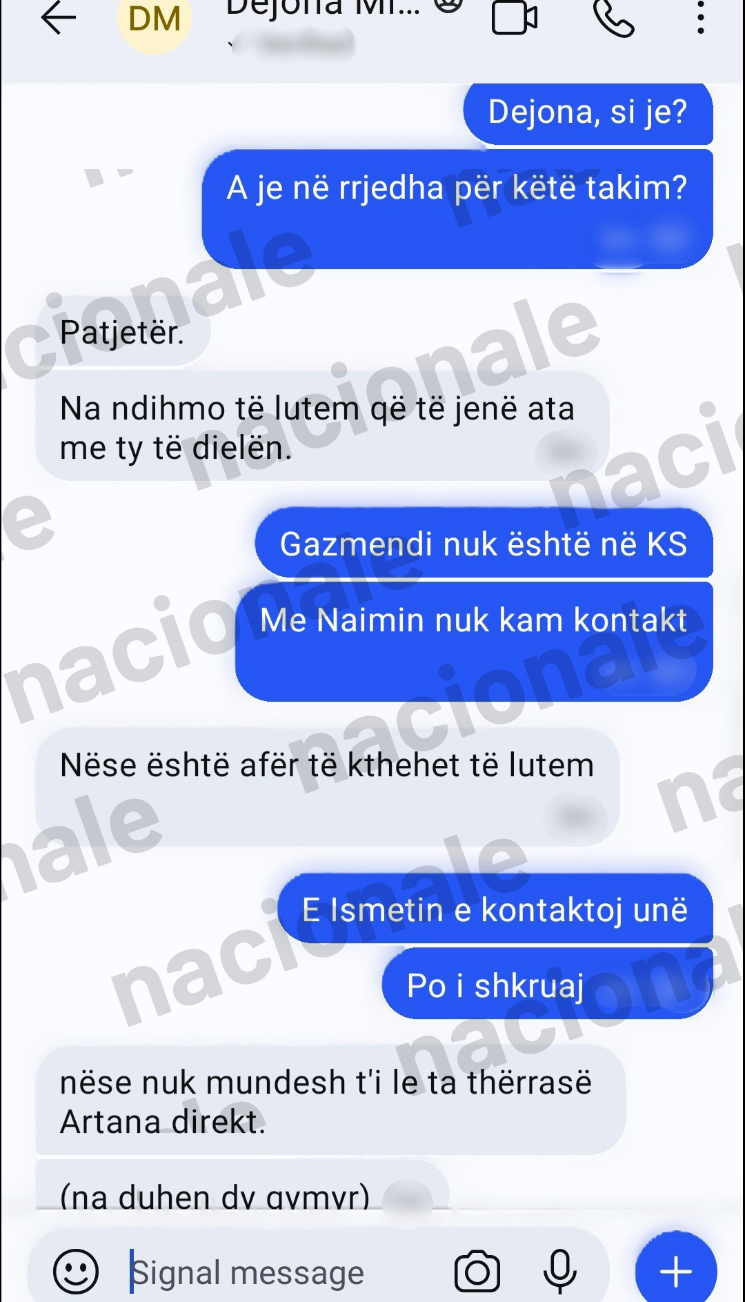 “A ka mundësi ta kontaktosh dhe ta pyesësh si është puna. Vetëm i thuaj që na thanë se diçka problem keni aty”, i shkruan Dejona Mihali Nagip Krasniqit.