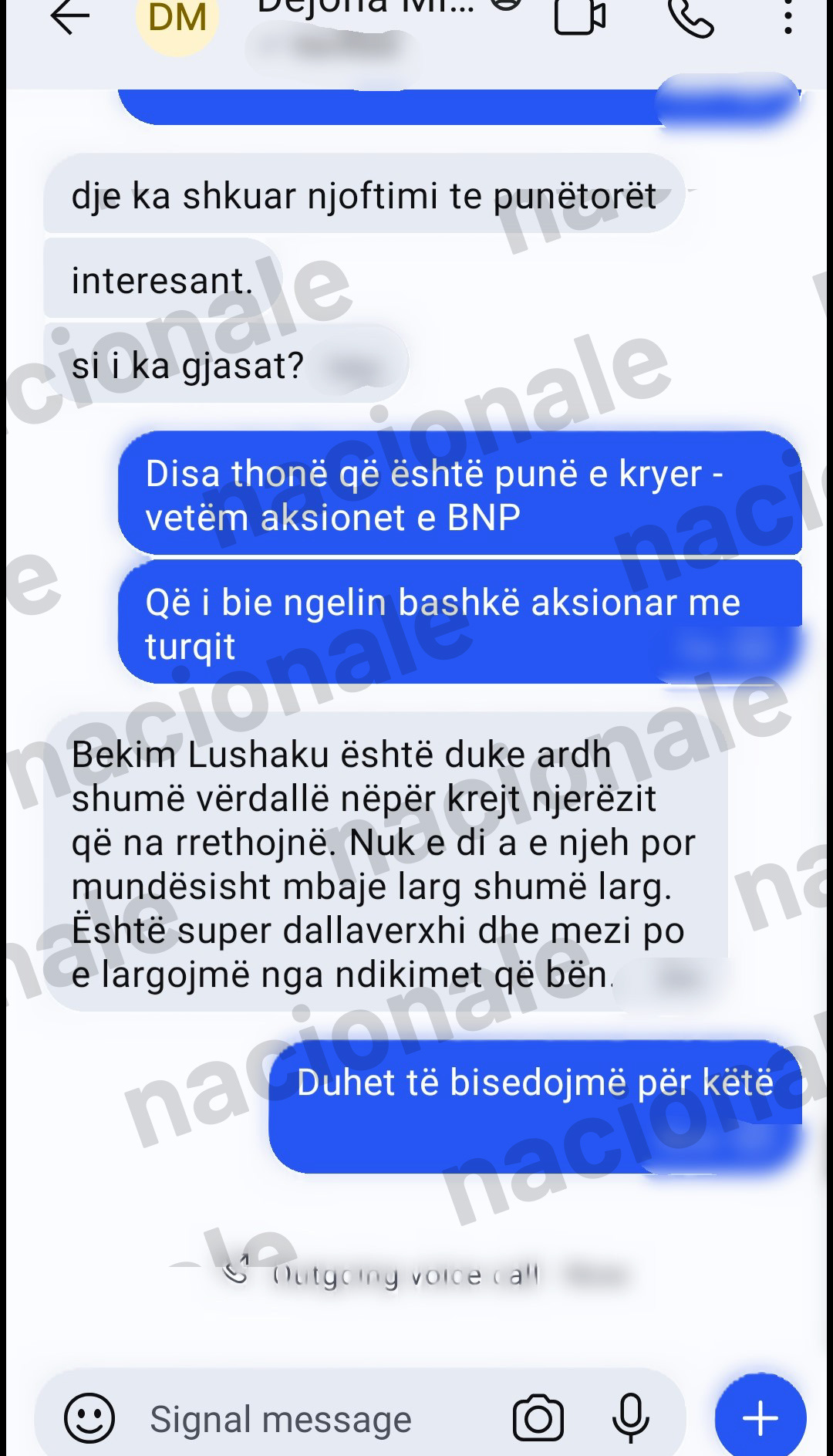 Në temat e tjera për energjinë të cilat Mihali i njeh me detaje, Nagip Krasniqi flet për aksionet e BNP. Më pas, Mihali ia pret duke komentuar për një person të quajtur Bekim Lushaku. “Bekim Lushaku është duke ardh shumë vërdallë nëpër krejt njerëzit që na rrethojnë. Nuk e di a e njeh por mundësisht mbaje larg shumë larg. Është super dallaveraxhi dhe mezi po e largojmë nga ndikimet që bën”, i shkruan Mihali ish-kryeshefit të KEK-ut. Ky i fundit ia kthen: “Duhet të bisedojmë për këtë”.
