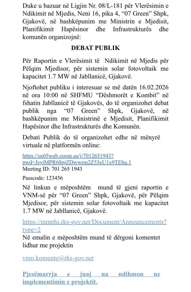Debat Publik nga “07 Green” Shpk 24 dhjetor 2025 | 11:19 Lajme të sponsorizuara Të Fundit 24 dhjetor11:20 Debat Publik nga “Gashi” Shpk 24 dhjetor11:19 Debat Publik nga “07 Green” Shpk 24 dhjetor11:13 Shpallje e pavlefshme ecertifikatës së TVSH-së nga KPSEG L.L.C 24 dhjetor11:10 Shpallje e pavlefshme e certifikatës nga KPSEG L.L.C 23 dhjetor18:09 Shpallje e pavlefshme nga FARMA GOGIČ 23 dhjetor15:01 Shpallje nga Besart Zeqiri