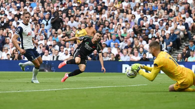 Arsenali ka shënuar fitore minimale me rezultat 1-0 në udhëtim ndaj rivalit lokal Tottenhamit në kuadër të xhiros së katërt në elitën e futbollit anglez. Të parët që rrezikuan ishin vendasit të cilët iu afruan seriozisht golit në minutën e gjashtë me anë të Dejan Kulusevskit të cilit iu mohua goli nga David Raya.