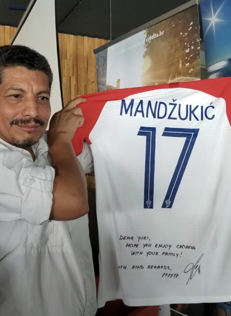 Ai është ftuar për të vizituar vendin ballkanas dhe ka marrë një fanellë të lojtarit si dhuratë. Por jo vetëm nga Mandzukic, edhe Luka Modriq kishte lënë një fanellë të tijën për të. Bashkë me fanellën ishte edhe një shkrim: “Shpresoj të shijosh udhëtimin në Kroaci me familjen”.