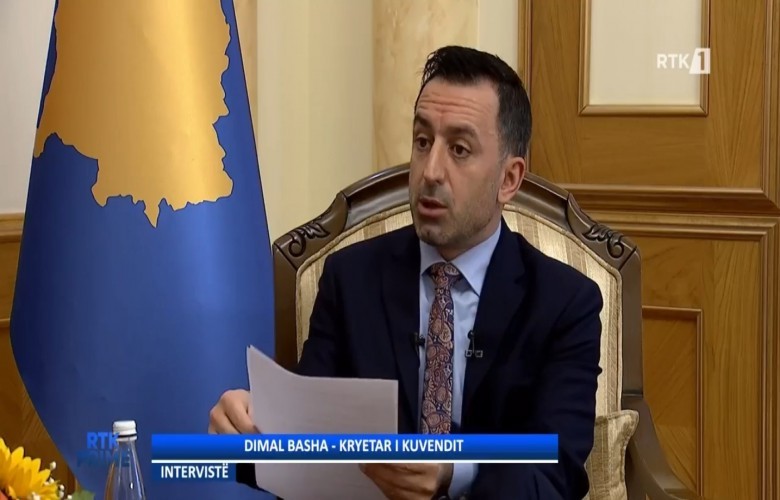 Për herë të parë pas marrjes së detyrës si kryetar i Kuvendit të Kosovës, Dimal Basha ka dhënë intervistën e tij të parë në RTK. Në këtë intervistë, kryetari i Kuvendit ka folur për Gjykatën Kushtetuese, lidhur me masën e përkohshme. Ai tha se beson se partitë shqiptare duhet të gjejnë vullnet e të bashkëpunojnë mes vete. Basha tha se nuk beson se do të ketë masë të përkohshme.