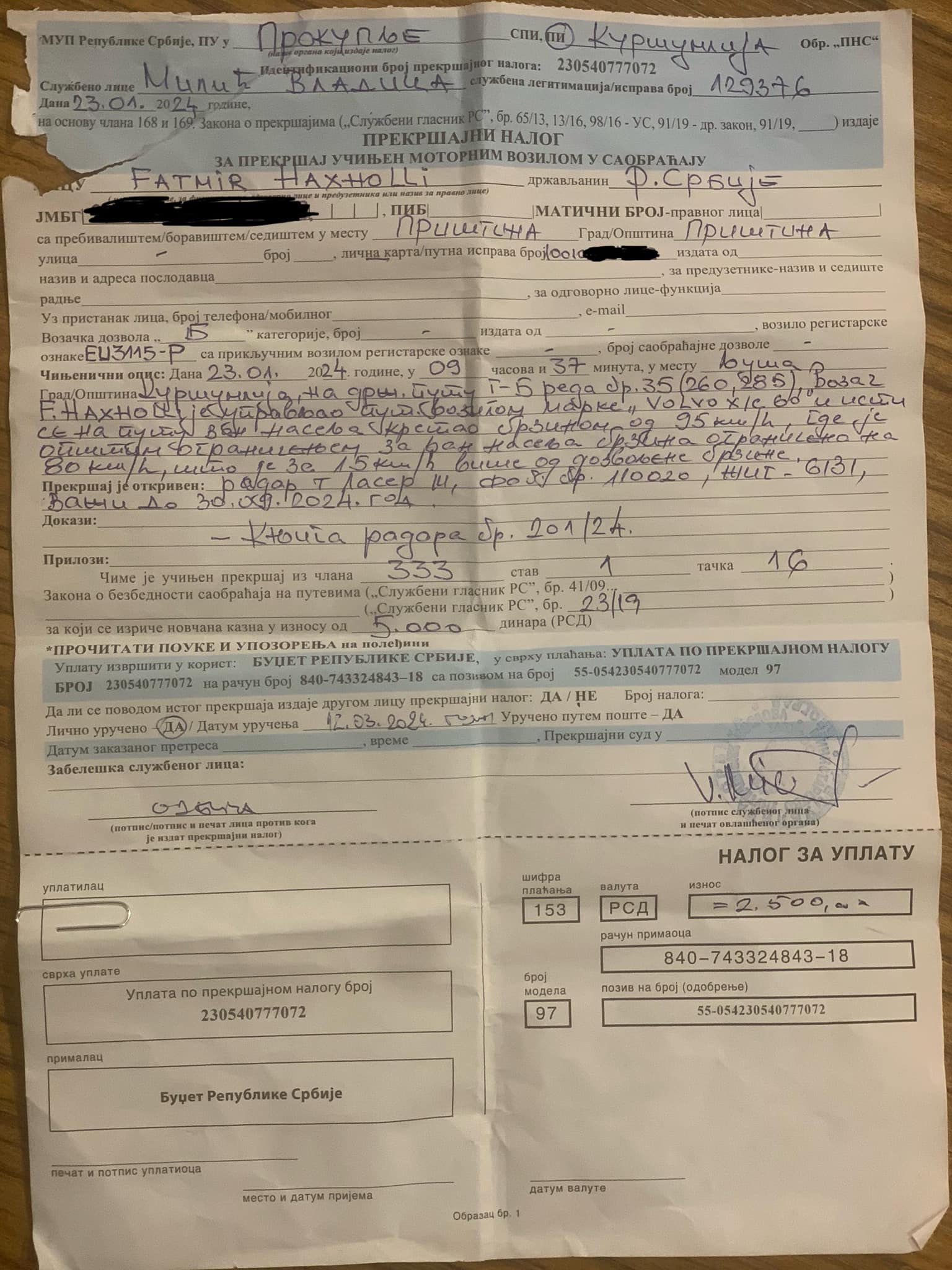 Fatmir Haxholli, sekretar i Zyrës Ndërlidhëse të Kosovës në Serbi, ka thënë se ka refuzuar ta nënshkruajë një gjobë të autoriteteve serbe ku në shkresat nga dokumenti identifikues i tij në vend të “Republika e Kosovës” e kanë shkruar “Republika e Serbisë”.
