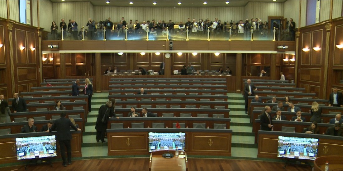 Në sallë shihen deputetët e Lidhjes Demokratike të Kosovës, Aleancës për Ardhmërine e Kosovës dhe Nismës Socialdemokrate.