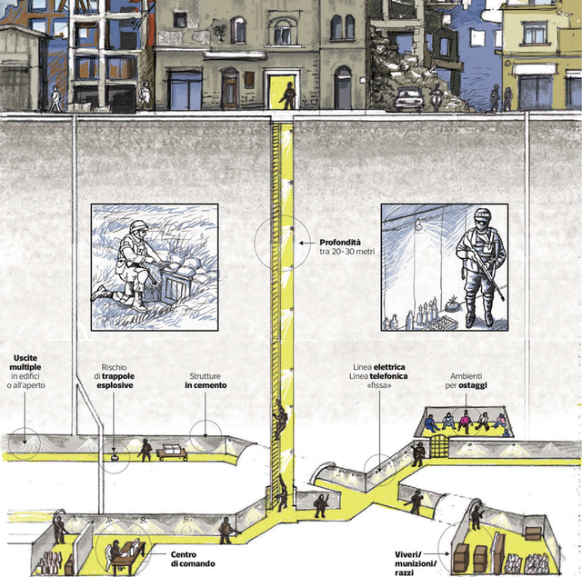 Kështu ato morën rolin e një fronti “të fshehtë”, gjithmonë të rrezikshëm. Të shtunën u njoftua vdekja e katër parashutistëve për shkak të shpërthimit të një bombe në “grykën” e një tuneli, i cili ndoshta ishte bllokuar nga milicët.