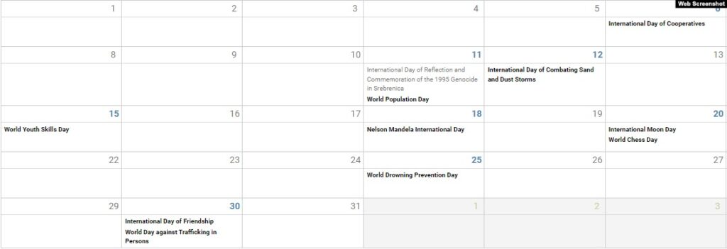 Dita Ndërkombëtare e Përkujtimit të Gjenocidit në Srebrenicë, 11 Korriku, tashmë është shënuar në kalendarin zyrtar në faqen e OKB-së.