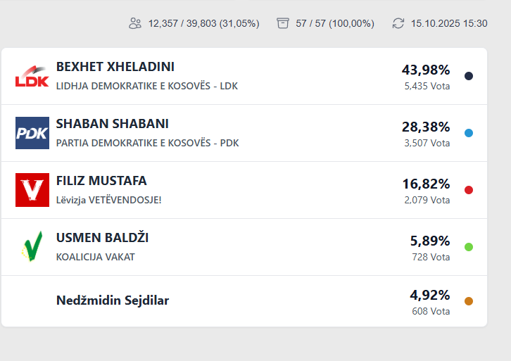 Kujtojmë se në zgjedhjet e 12 tetorit- Behxhet Xhelaldini ka shkuar në balotazh me Shaban Shabanit të PDK-së. Ai nuk ka arritur t’i marr votat e mjaftueshme për të fituar me të parën garën për kryetar të Dragashit.