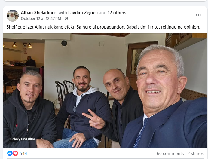 Lidhur me këto dyshime ka reaguar edhe djali tjetër i kryetarit, Alban Xheladini, përmes një statusi në Facebook: