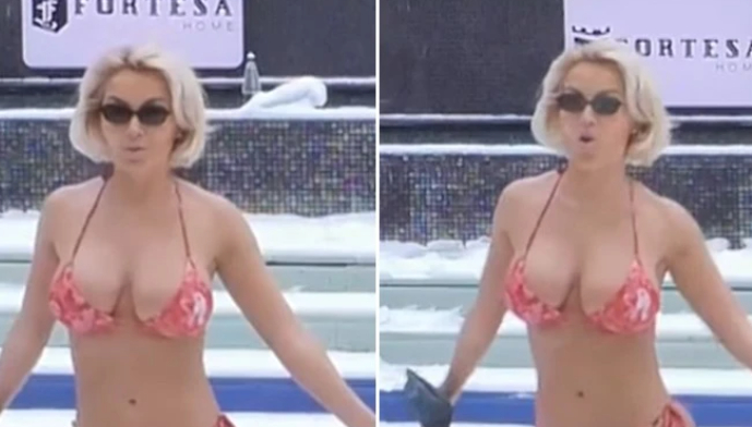 Dolce sfidon të ftohtin, shfaqet me bikini në oborrin e mbuluar me borë
