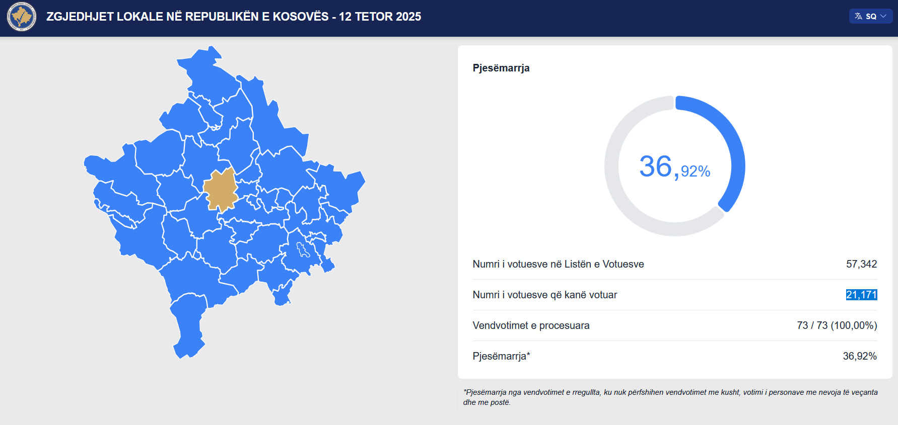 Deri më tani kanë votuar 21 mijë e 171 qytetarë, apo 36,92%.