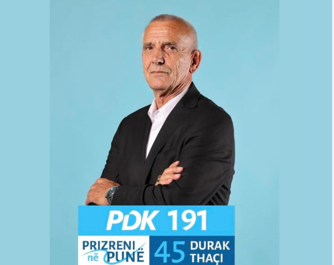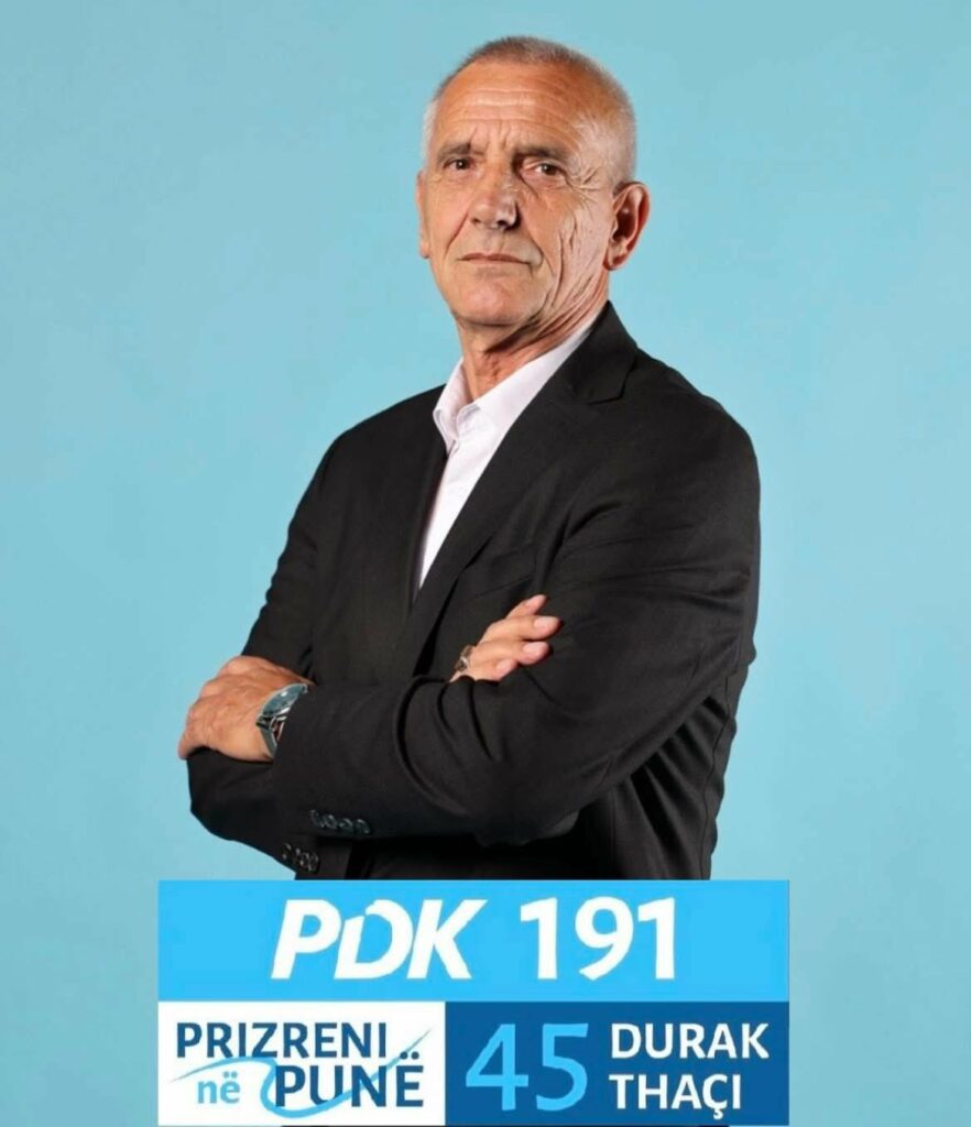 Durak Thaçi është kandidat i Partisë Demokratike të Kosovës për asamblist në Kuvendin Komunal të Prizrenit. Ai i është bashkuar listës së udhëhequr nga kryetari aktual dhe kandidati për kryetar, Shaqir Totaj, me synim vazhdimin e projekteve të filluara dhe nisjen e iniciativave të reja në çdo lagje e fshat të Prizrenit.