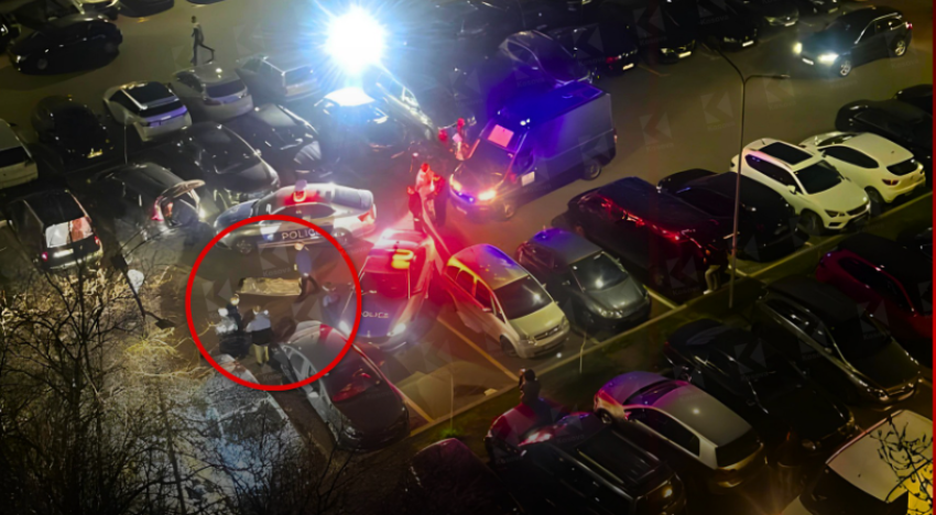 Në pamje shihen disa vetura të policisë në vendin e ngjarjes dhe një trup i pajetë i mbuluar.