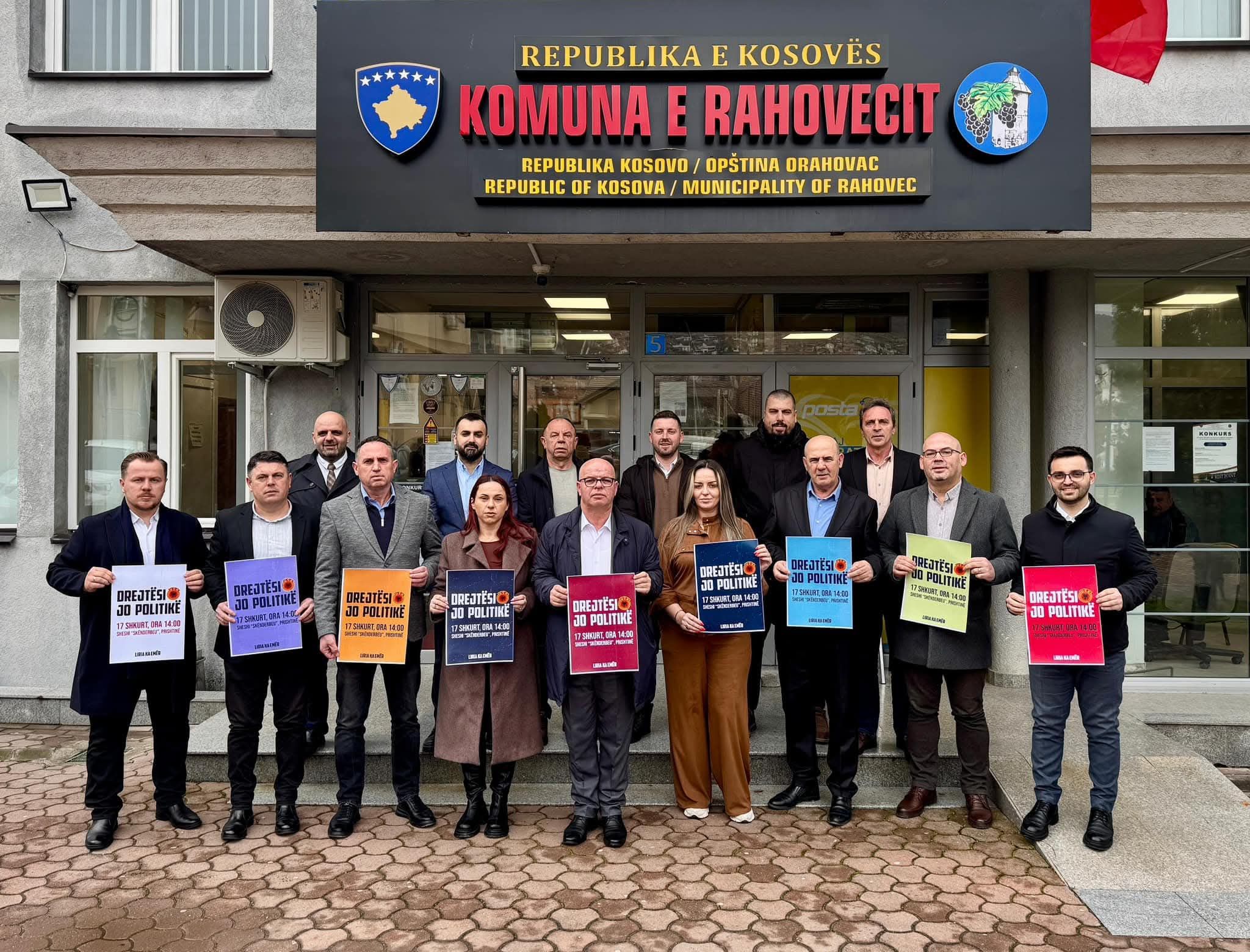 Ekzekutivi i Komunës së Rahovecit, së bashku me kryetarin, ka shprehur mbështetje për marshin gjithë popullor “DREJTËSI, JO POLITIKË!”, i cili do të mbahet më 17 shkurt, nga ora 14:00, në sheshin “Skënderbeu” në Prishtinë.