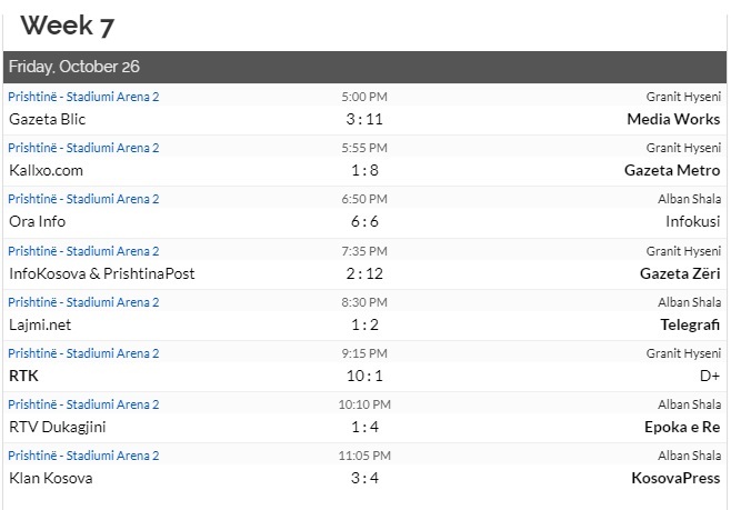 Duhet cekur se ekipi i “Lajmi.net” ka pësuar humbje nga “Telegrafi”, derisa “KosovaPress”-i e mposhti ekipin “Klan”-it.