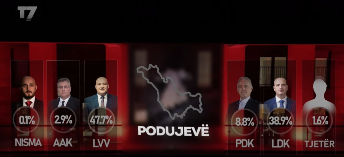 Sipas Exit Pollit të T7, në Komunën e Podujevës do të ketë balotazh.