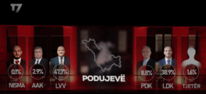 Podujeve 12 tetor 2025 | 19:17 Lajme të sponsorizuara Të Fundit 12 tetor19:23 AAK e para në Suharekë sipas Exit Poll-it të Baton Haxhiut – LDK e dyta me 30.6% 12 tetor19:20 Exit-Polli i Klan Kosova për Gjilanin: LVV dhe LDK në balotazh 12 tetor19:19 Exit Polli i T7: Podujeva shkon në balotazh, këto janë rezultatet 12 tetor19:18 Rezultatet për Prizrenin: Exit Poll-i i Klan Kosovës e nxjerrë Totajn me 46.14% 12 tetor19:16 Exit-Polli i Klan Kosova: Gjini, plus katër 12 tetor19:16 Imri Ahmeti fiton pa balotazh në Lipjan, sipas Exit Poll-it në T7
