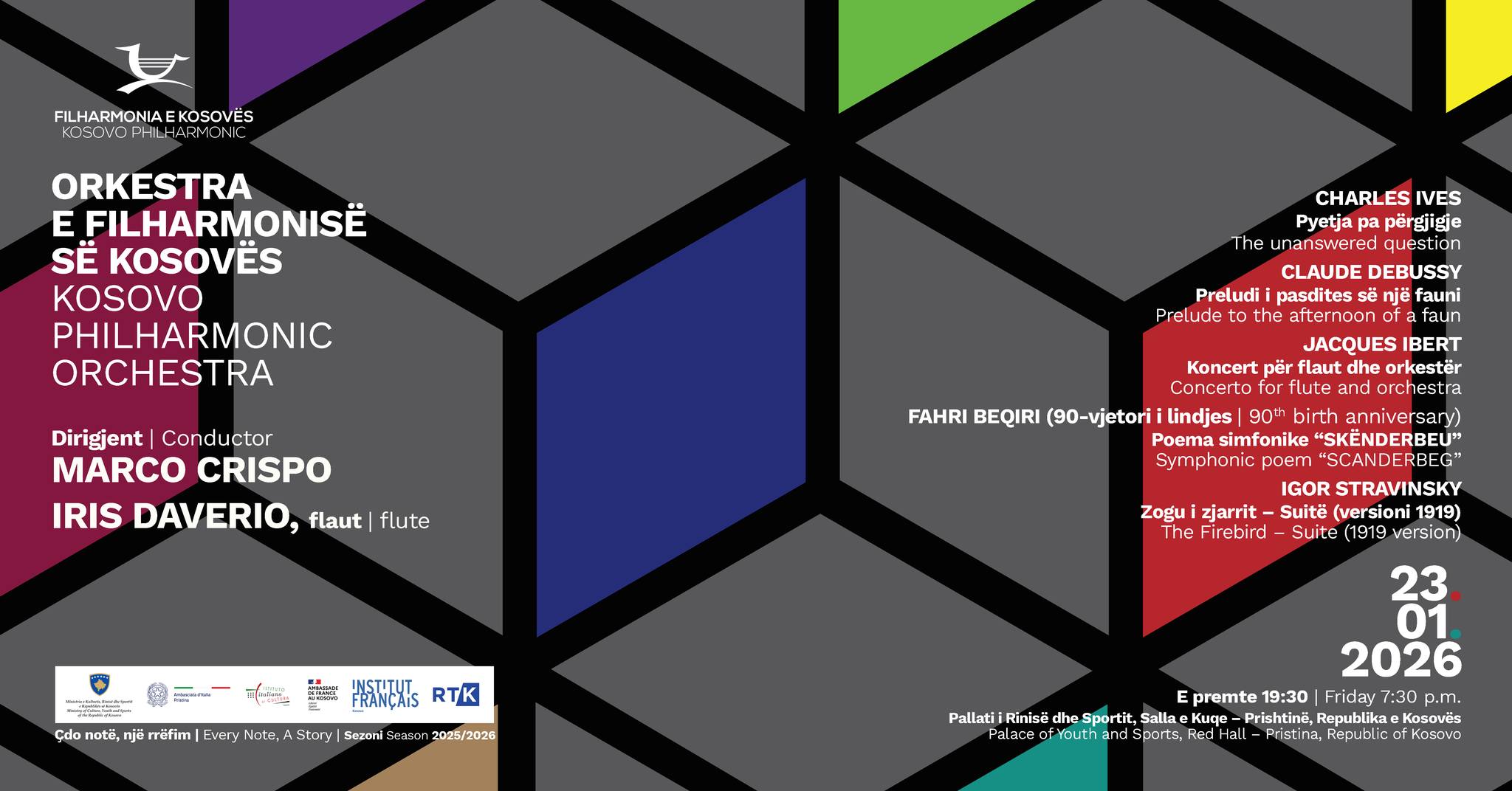 Nën dirigjimin e italianit Marco Crispo, koncerti sjell flautisten nga Franca Iris Daveiro si soliste, në një program që ndërthur ngjyrën impresioniste dhe identitetin e muzikës shqiptare.