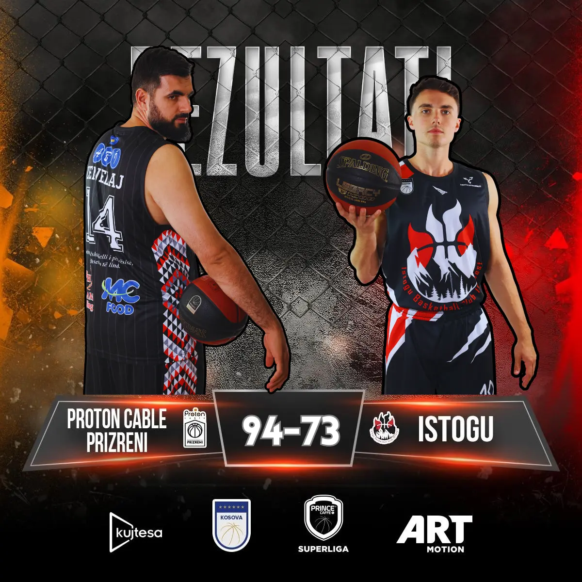 Proton Cable Prizreni ka shënuar një fitore shumë të rëndësishme, duke mundur Istogun me rezultat 94:73 (23:19, 23:15, 22:22, 26:17), në javën e shtatë të Prince Caffe Superligës.