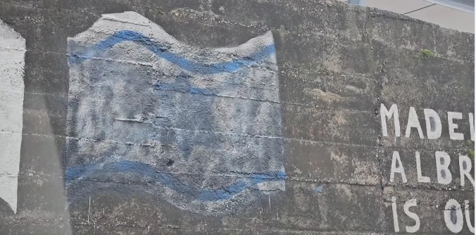 Gazetari Ridvan Berisha, ka njoftuar se është fshirë flamuri i Izraelit në një mural në Gjilan.