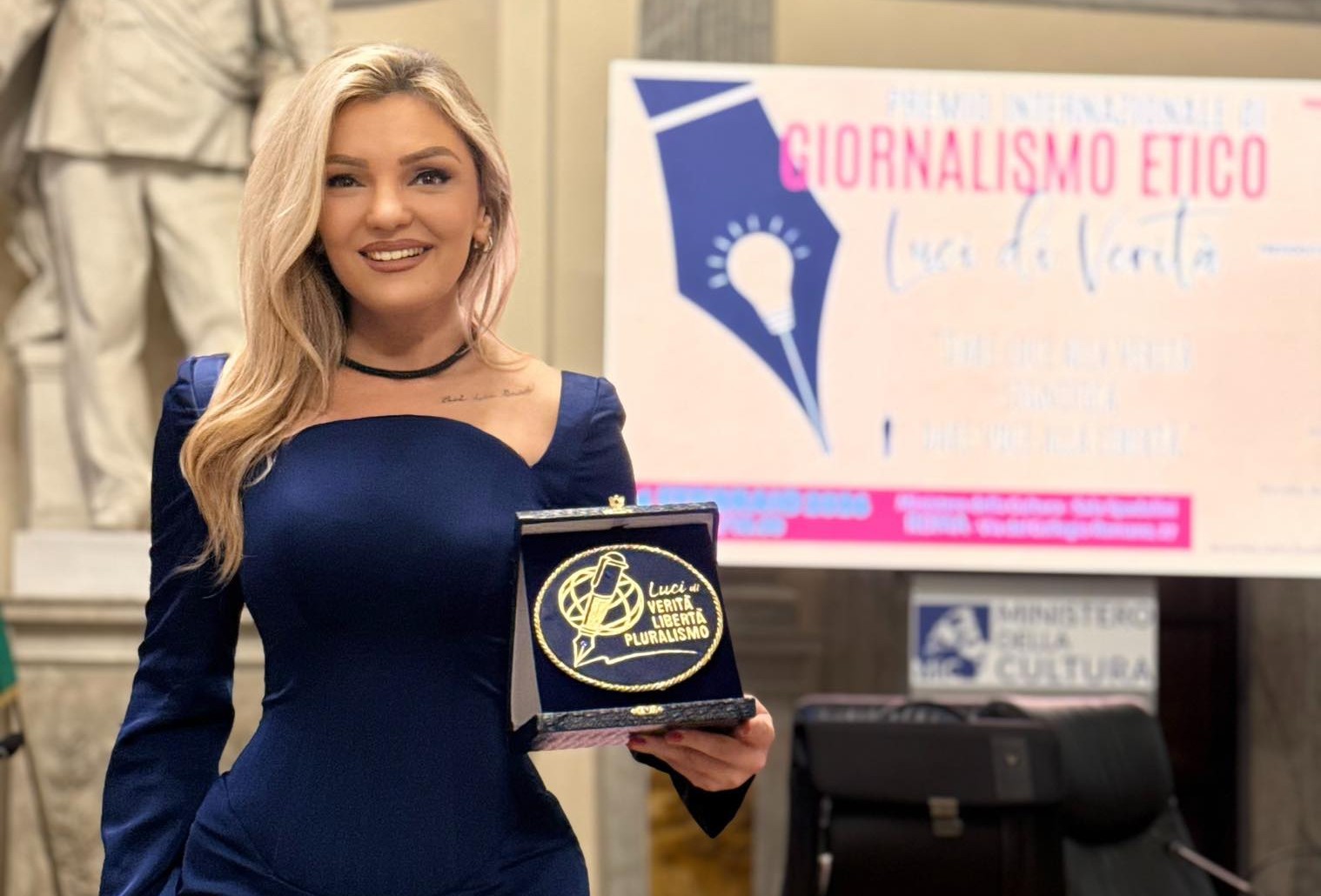 Në Ministrinë e Kulturës në Romë, në prezencën e shumë gazetarëve të mëdhenj të medias, përfaqësues institucionesh dhe senatorë, gazetares Alketa Gashi-Fazliu i është ndarë Çmimi Ndërkombëtar për Gazetari Etike në Romë.
