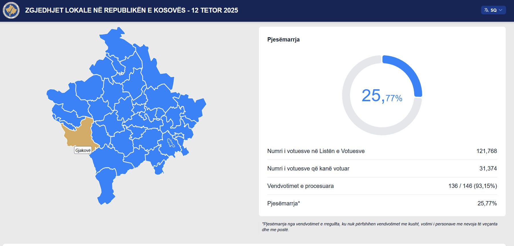 Sipas KQZ-së deri në ora 17:00 në Gjakovë kanë votuar 31 mijë e 374 qytetarë.