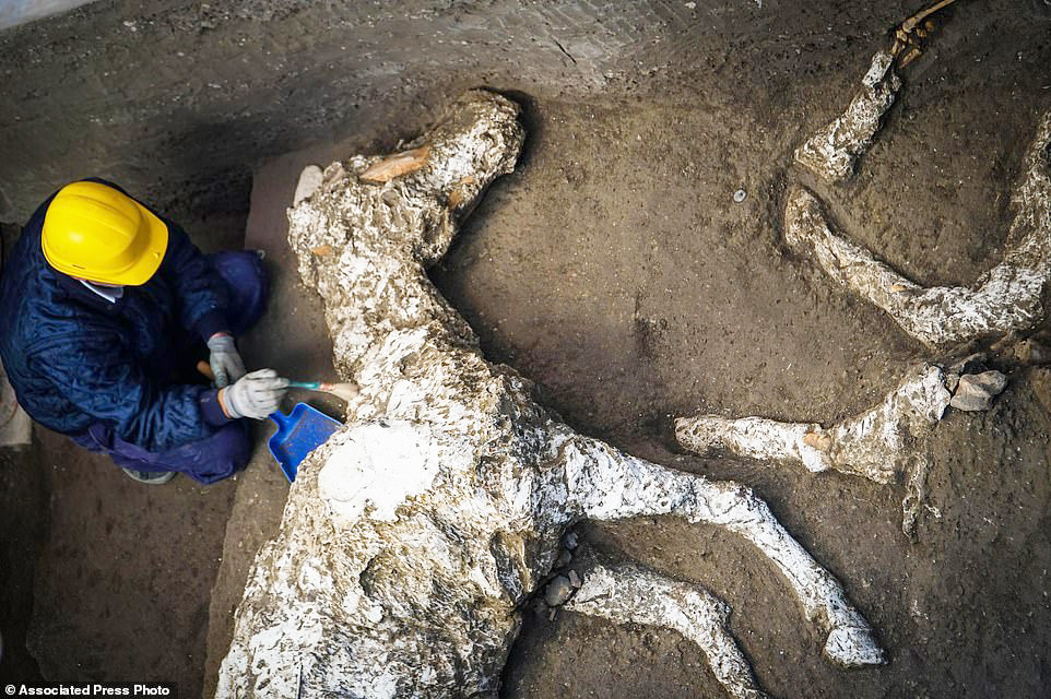 Gjenden mbetjet e kalit me parzmoren e tij në Pompei