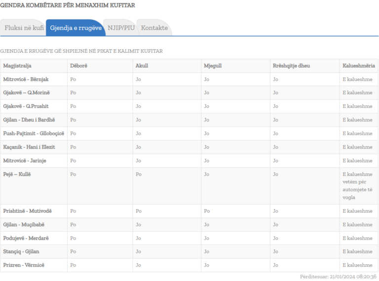 Mirëpo, nga Qendra Kombëtare për Menaxhim Kufitar thonë se gjendja në rrugët që çojnë në pikt kufitare, janë të kalueshme.