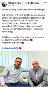 Gjykata Speciale ka arrestuar edhe Fadil Fazliun, ish-luftëtarin e UÇK-së, vëllanë e dy heronjve të kombit, Fahri e Bahri Fazliu.